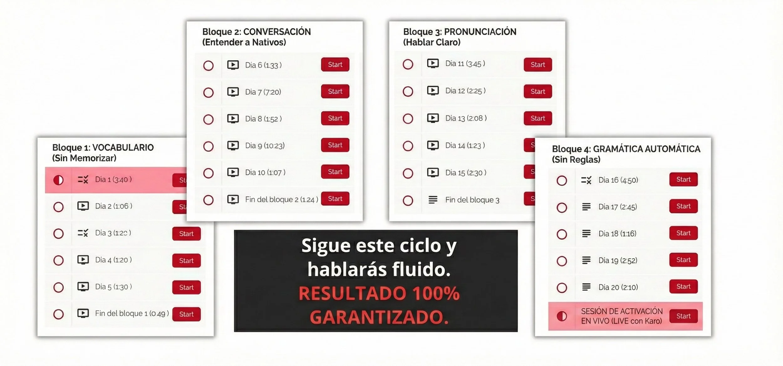 Es un programa estructurado, con lecciones para trabajar por tu cuenta y sesiones grupales en directo para resolver dudas y practicar.